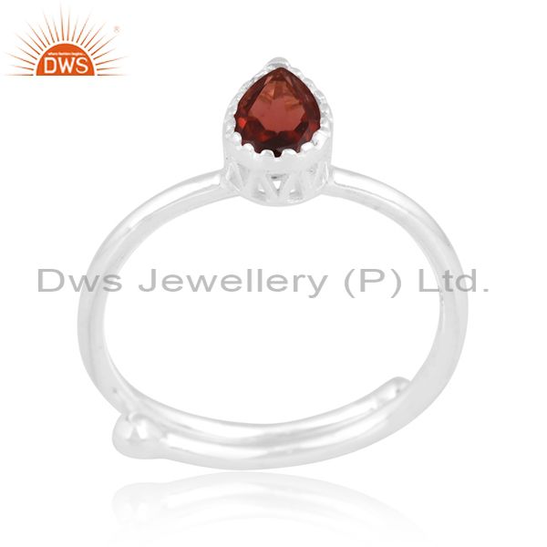 Sterling Silver Ring With Garnet Pear Cut Stone On Top