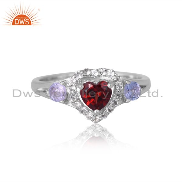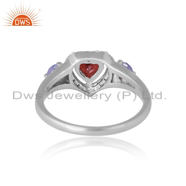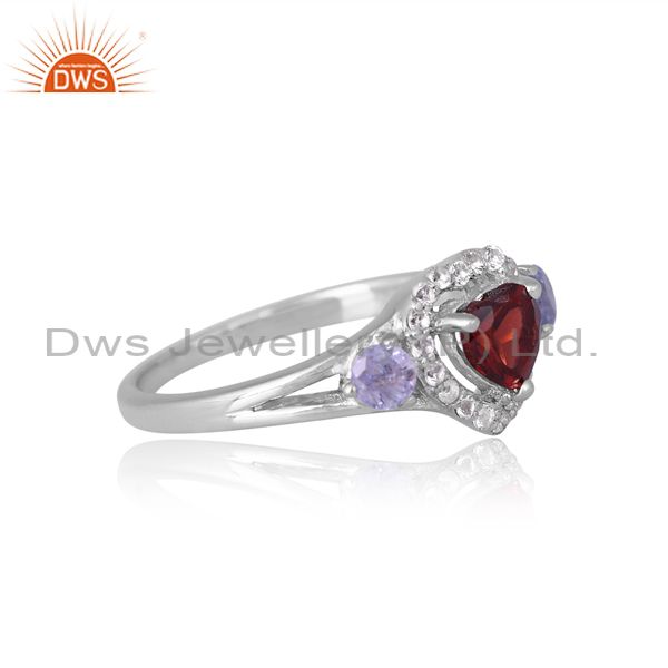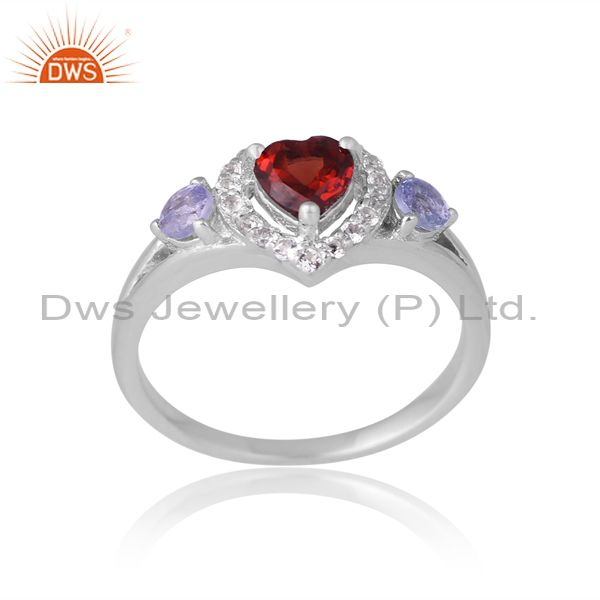 Sterling Silver Ring With Garnet, Tanzanite, And White Topaz