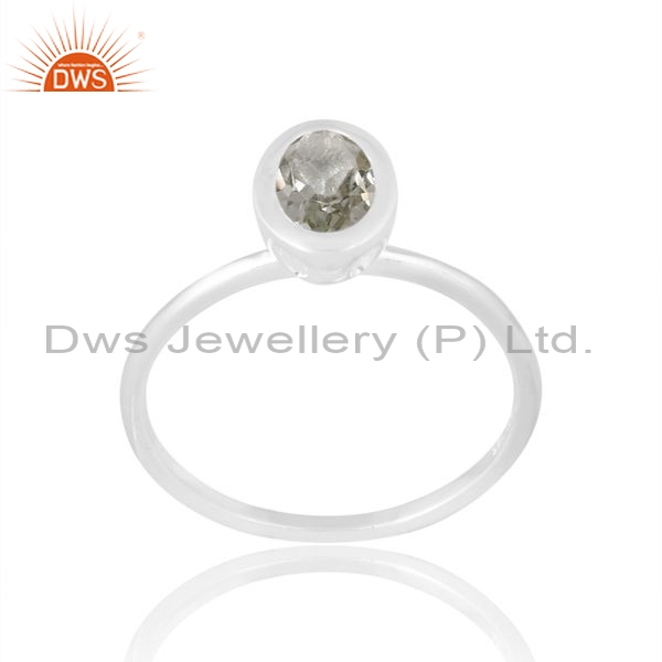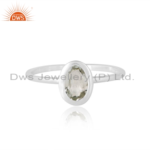 Sterling Silver Ring With Green Amethyst Oval Cut Stone