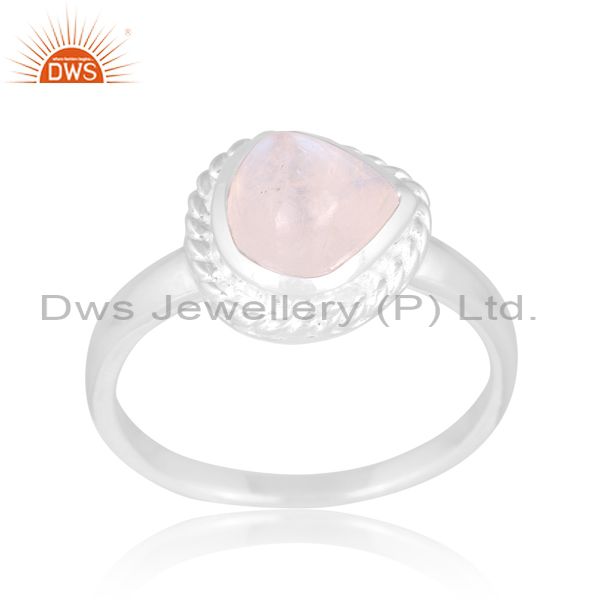 Sterling Silver Ring With Heart Shaped Rainbow Moonstone