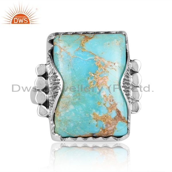 Sterling Silver Ring With Kingman Turquoise Beguette Stone