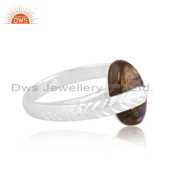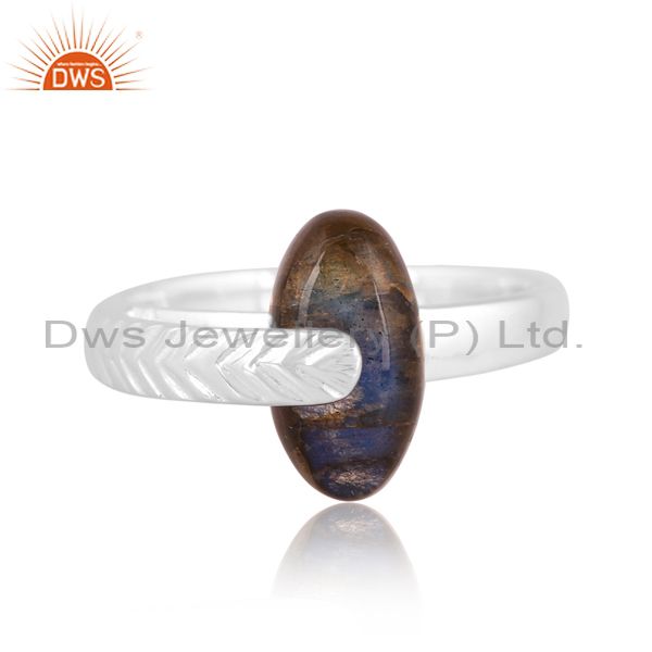 Sterling Silver Ring With Labrodorite Cabushion Oval Stone
