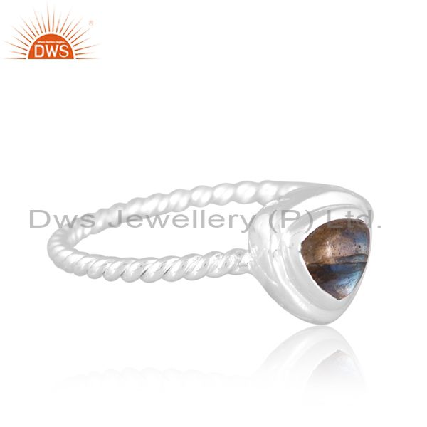 Sterling Silver Ring With Labrodorite Cabushion Stone