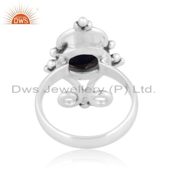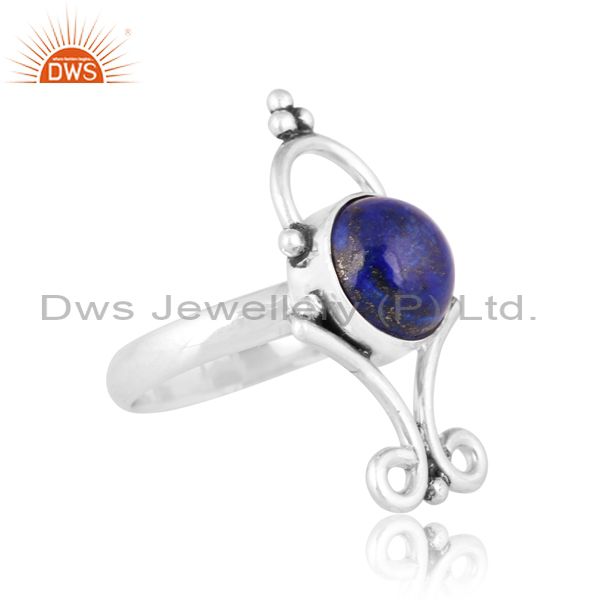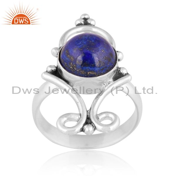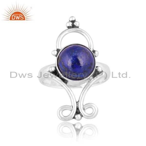 Sterling Silver Ring With Lapis Cabochon Round Stone