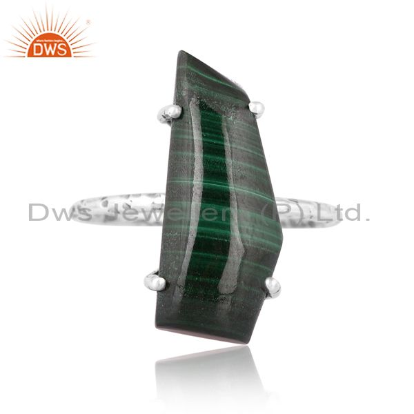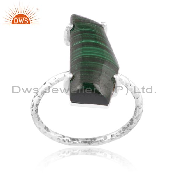 Sterling Silver Ring With Malachite Cabochon Unshaped Stone