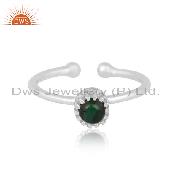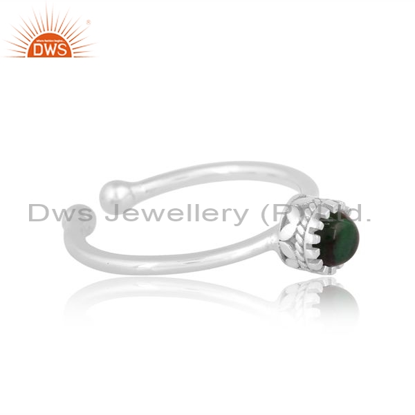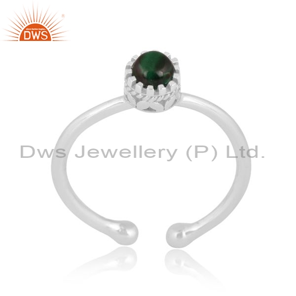 Sterling Silver Ring With Malachite Round Cabushion