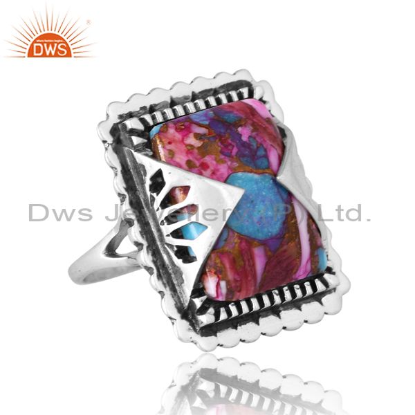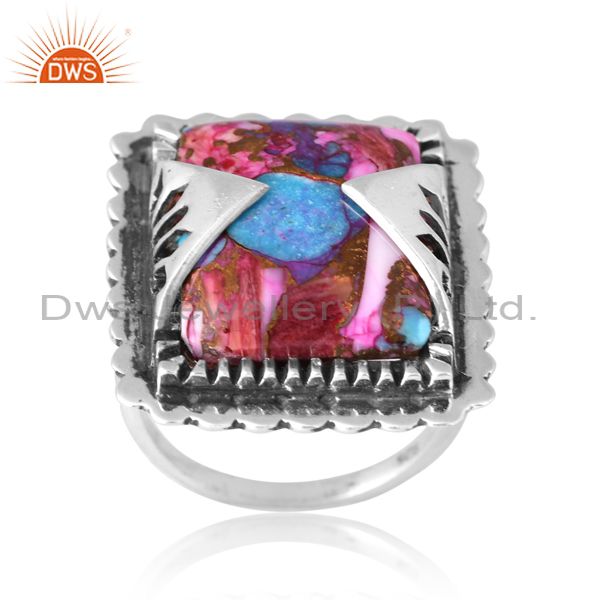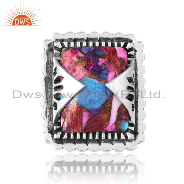 Sterling Silver Ring With Mojave Cabushion Beguette Cut
