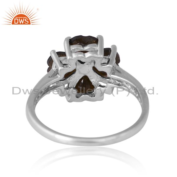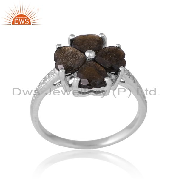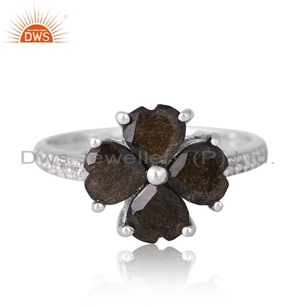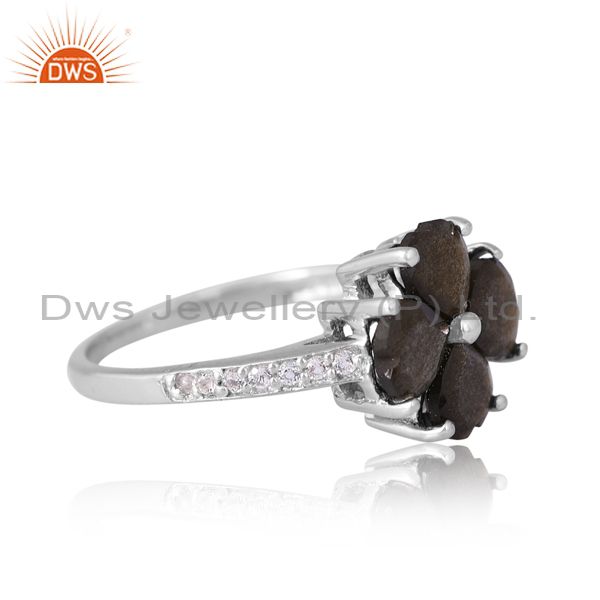 Sterling Silver Ring With Palladium Plating And Obsidian Cut