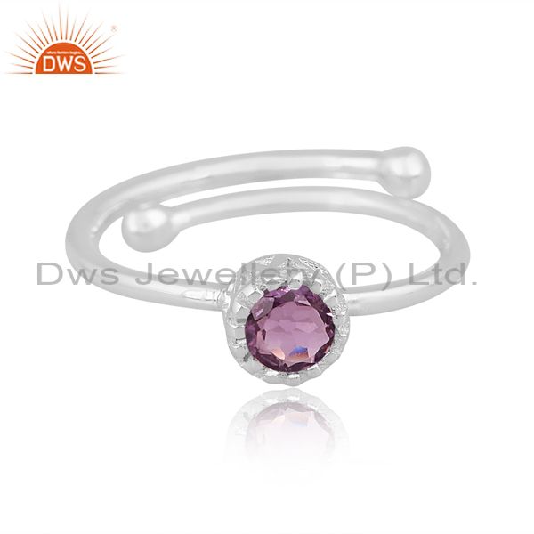Sterling Silver Ring With Pink Amethyst Round Cut Stone
