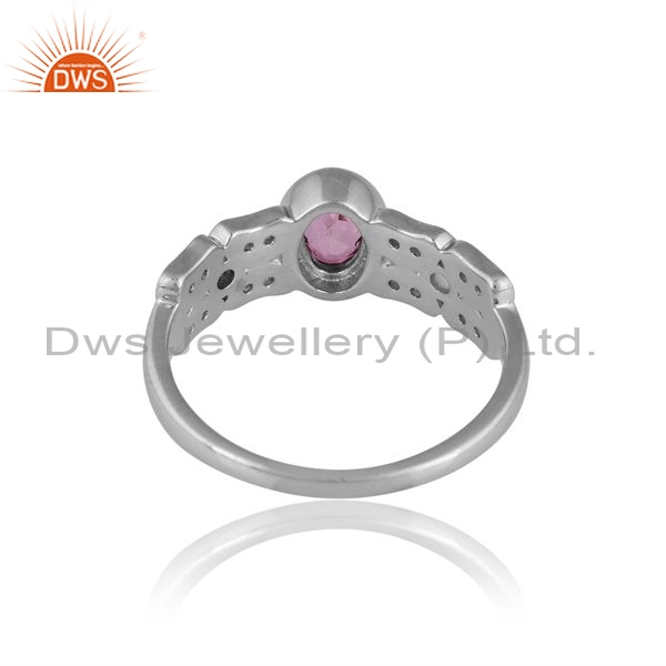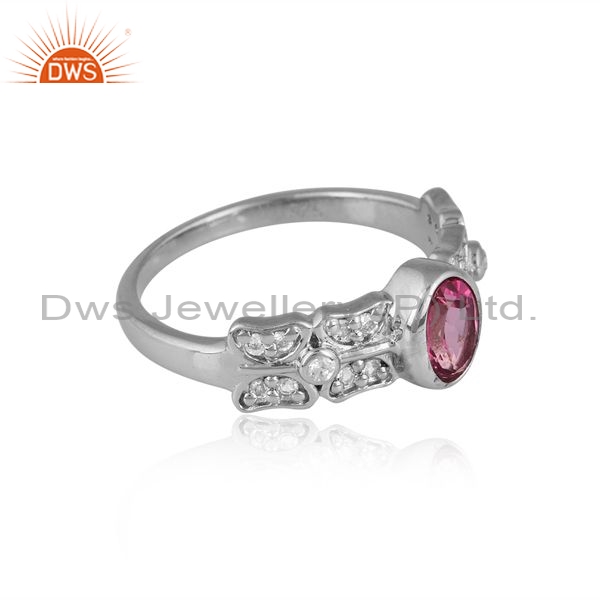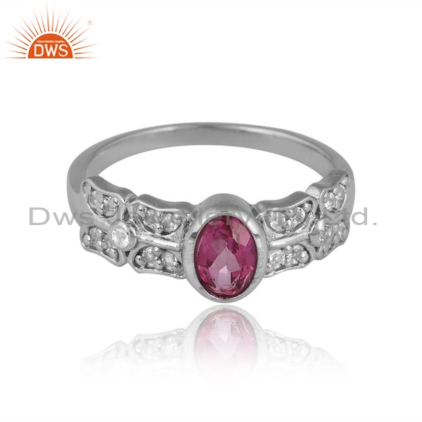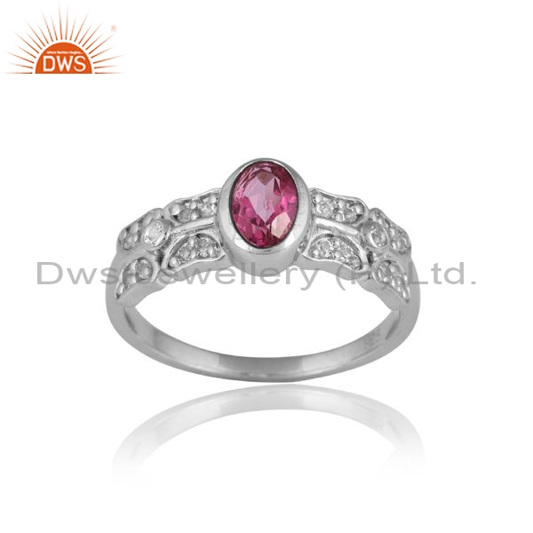 Sterling Silver Ring With Pink And White Topaz Double Band