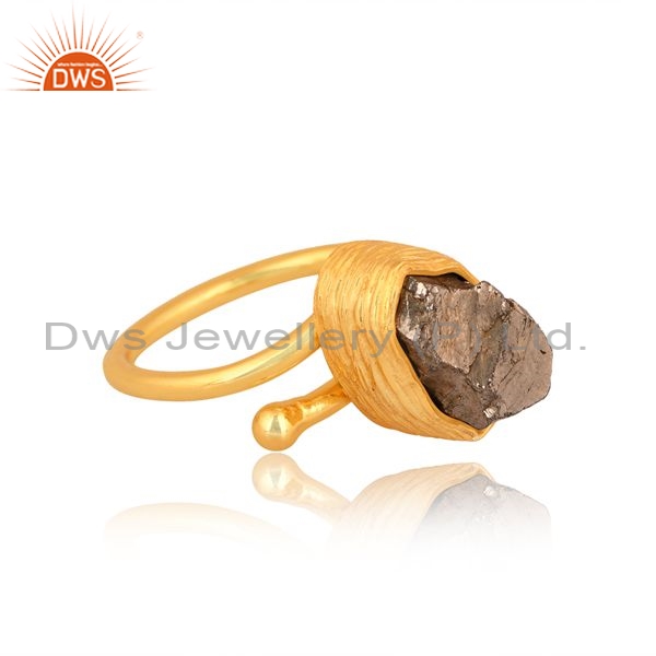 Sterling Silver Ring With Pyrite Rough Unshape Stone