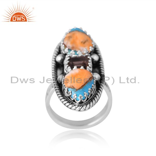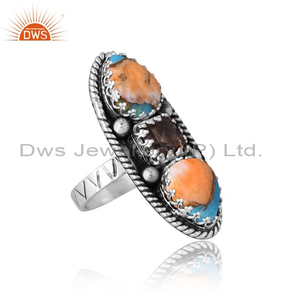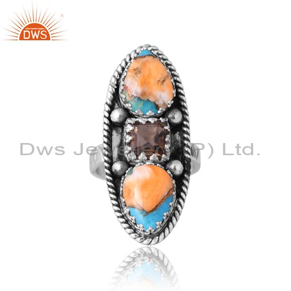 Sterling Silver Ring With Smoky And Copper Oyster Stone