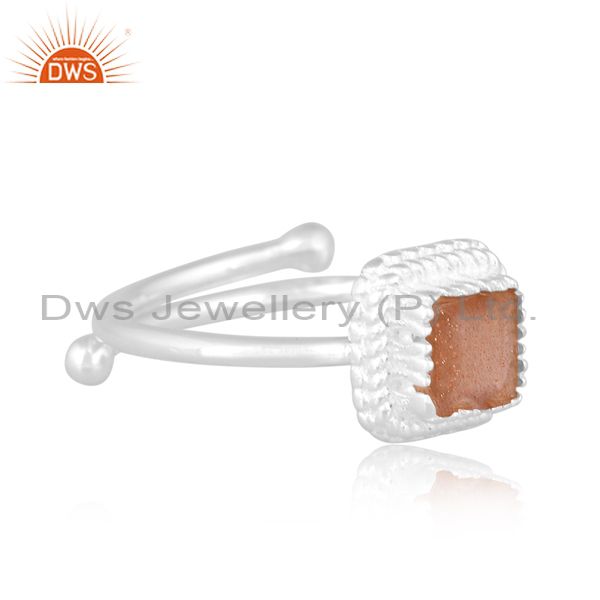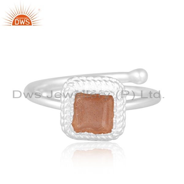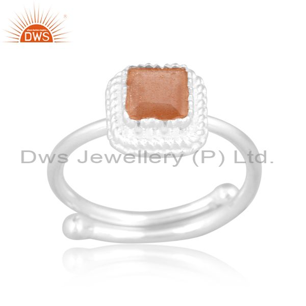 Sterling Silver Ring With Square Cut Chocolate Moonstone