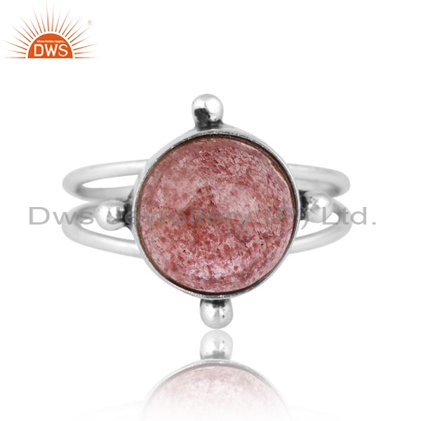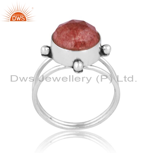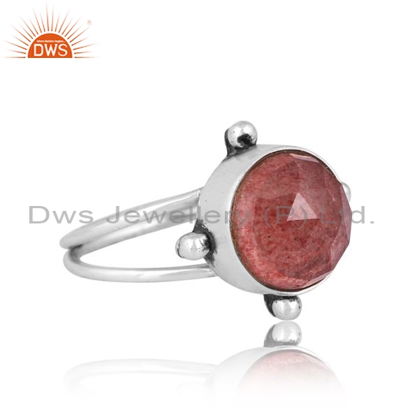 Sterling Silver Ring With Strawberry Quad Round Checker