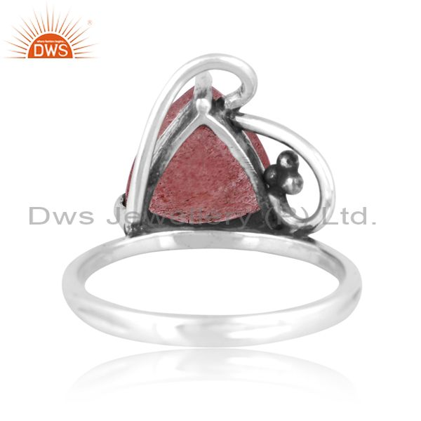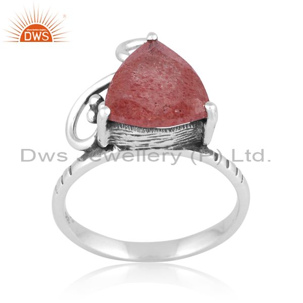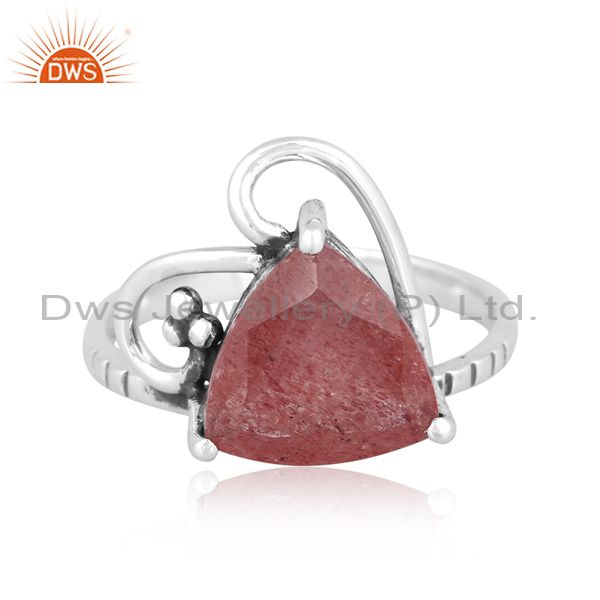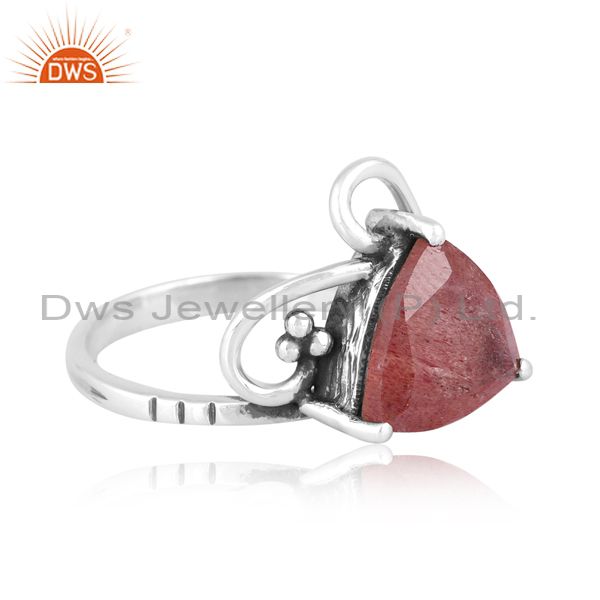 Sterling Silver Ring With Trillion Shaped Strawberry Stone