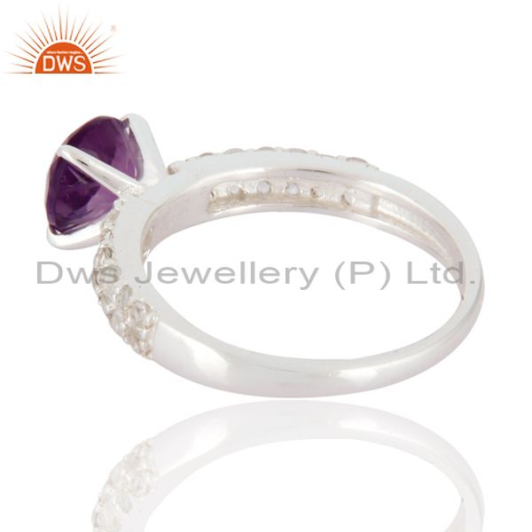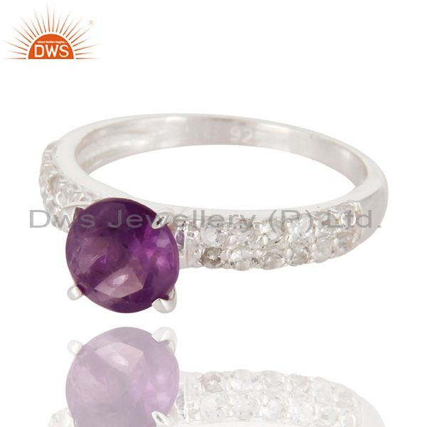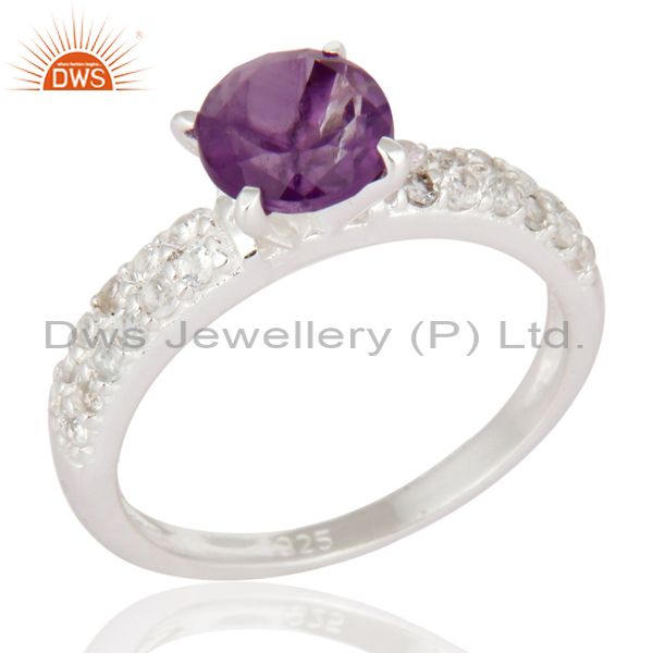Sterling Silver Round Cut Amethyst Gemstone Solitaire Ring With White Topaz Halo