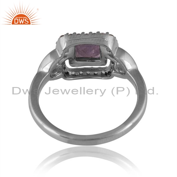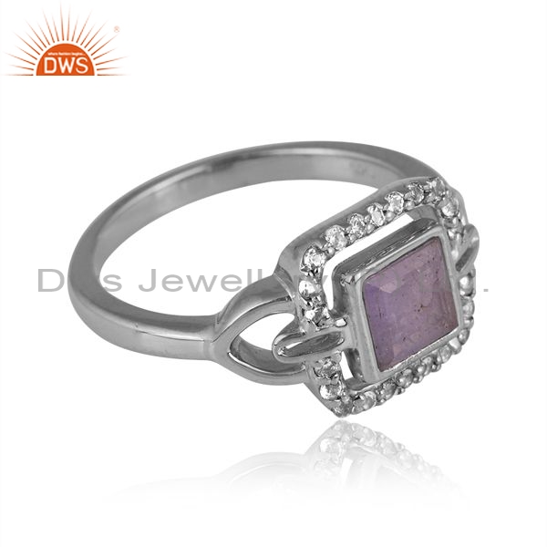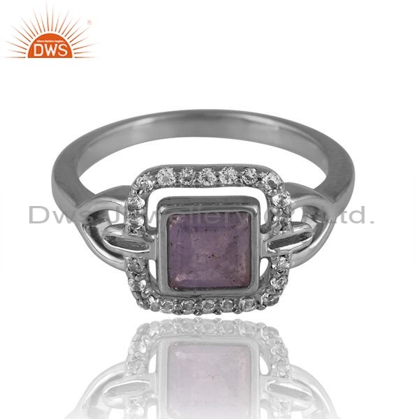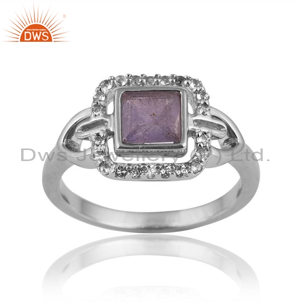 Sterling Silver Square Ring With Tanzanite And White Topaz
