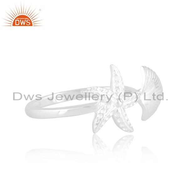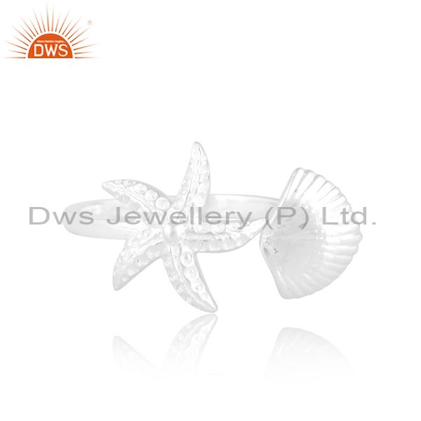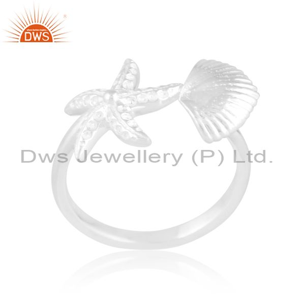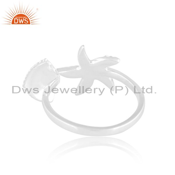 Sterling Silver Starfish White Ring With Double Edge Design