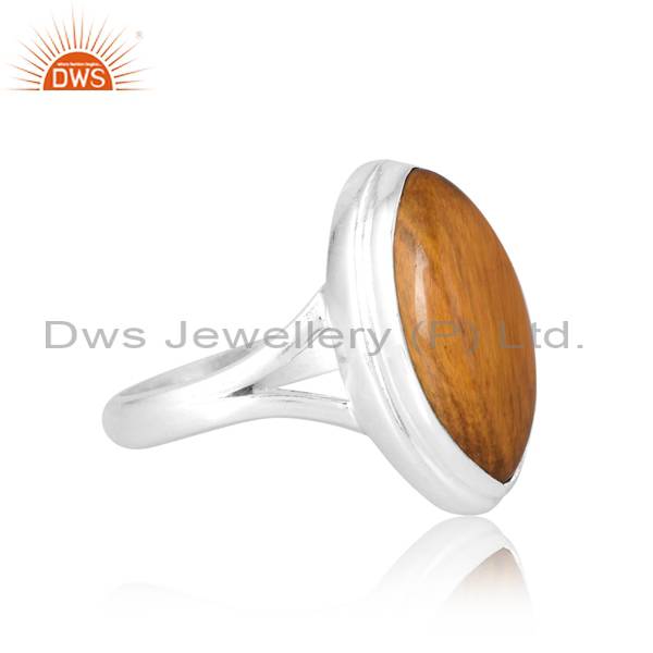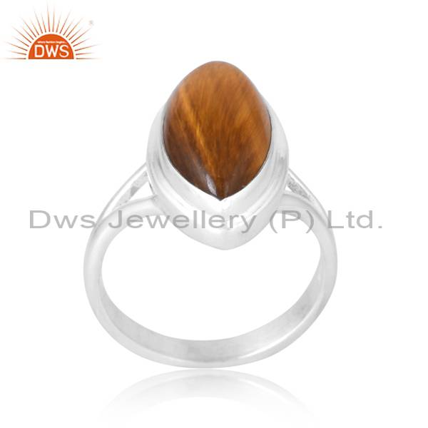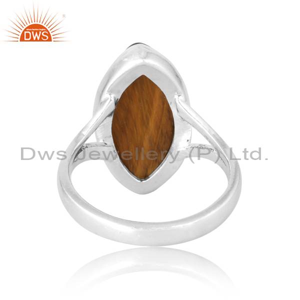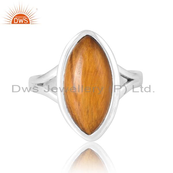 Sterling Silver Tiger Eye Yellow Cushion Cut Marquise Ring