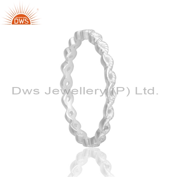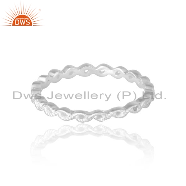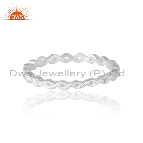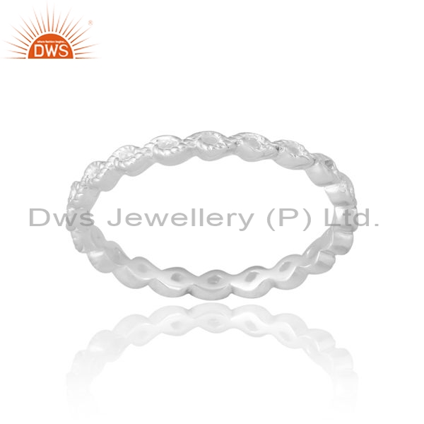 Sterling Silver White 18K Ring With Dotted And Curvy Design