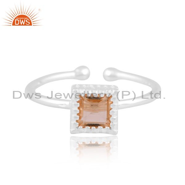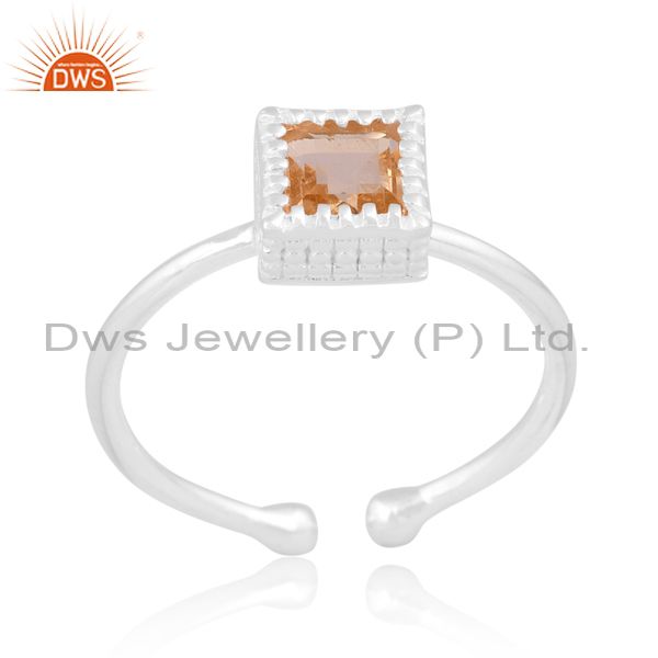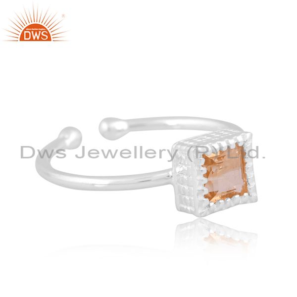 Sterling Silver White Citrine Stone With Square Cut Ring