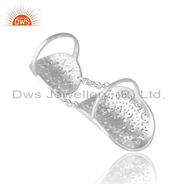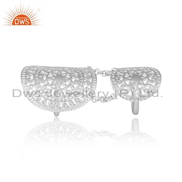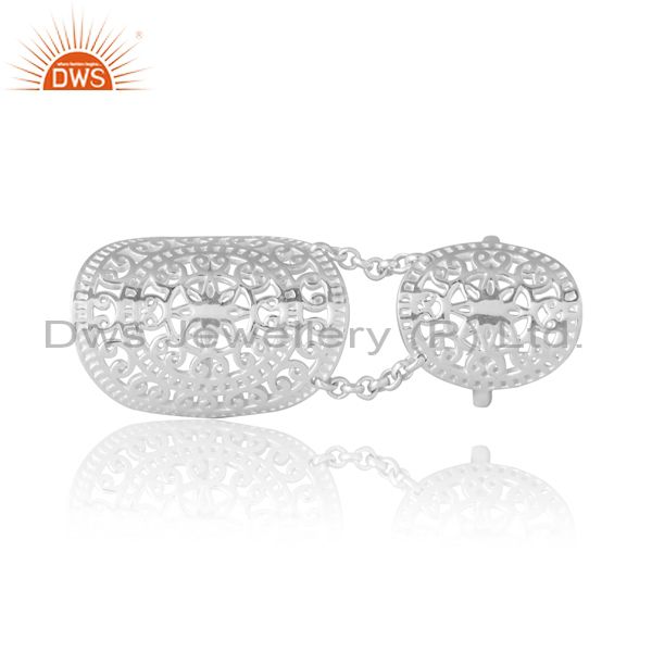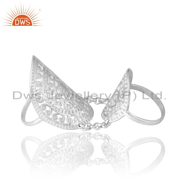 Sterling Silver White Double Ring With Chain Connector