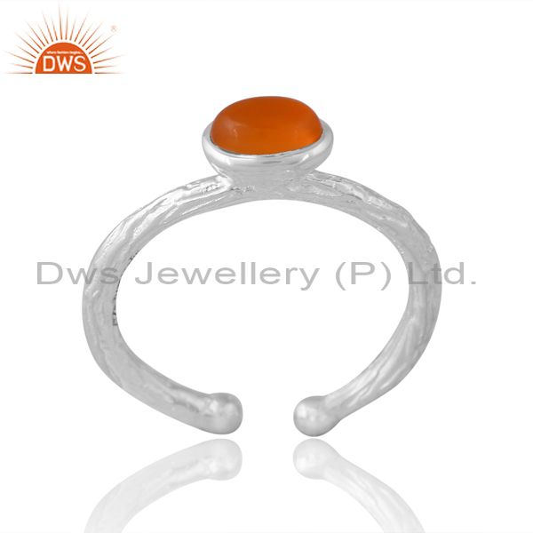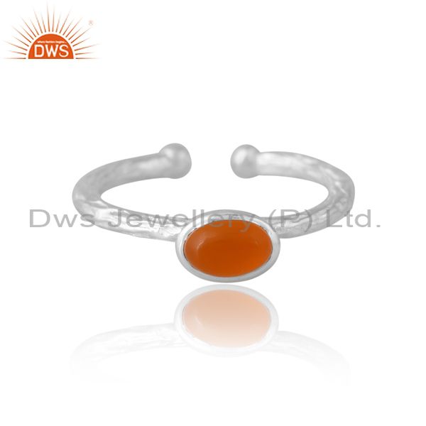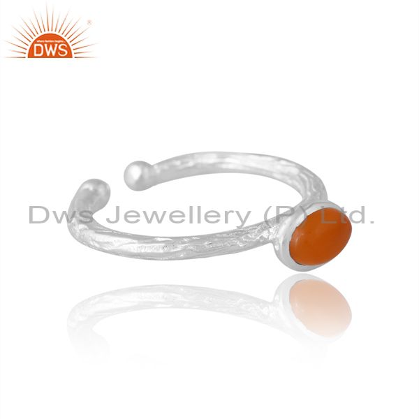 Sterling Silver White Earring With Carnelian Oval Horizontal