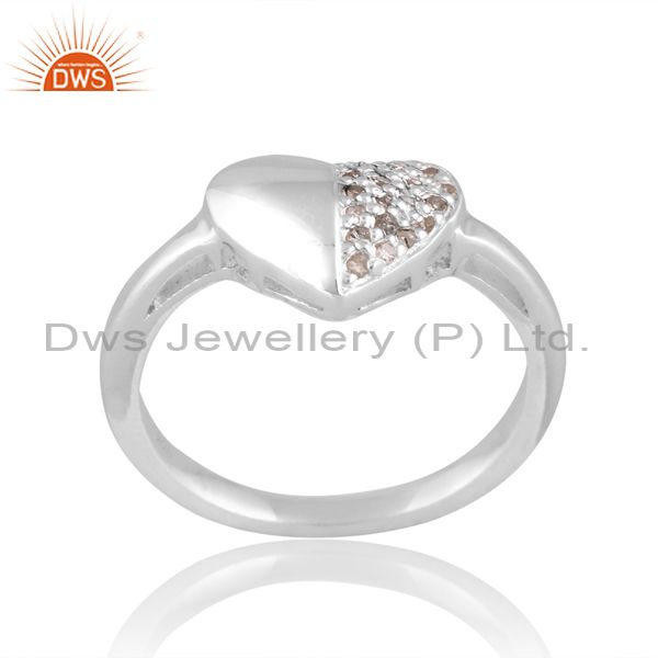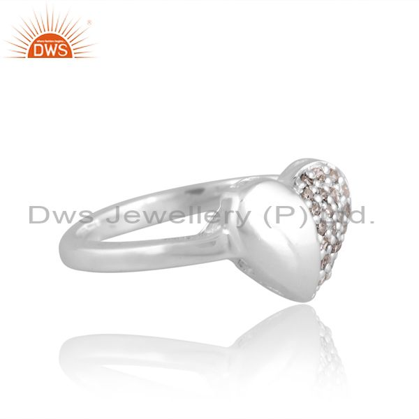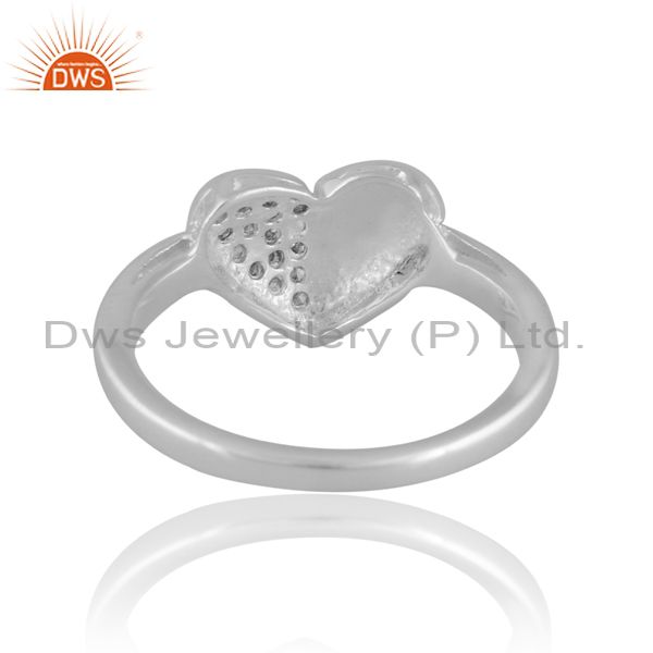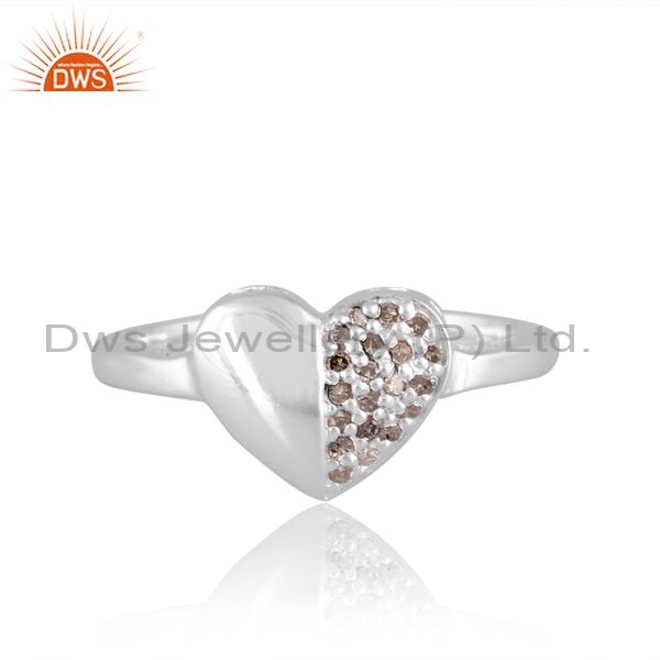 Sterling Silver White Heart Ring With Diamond Round Cut