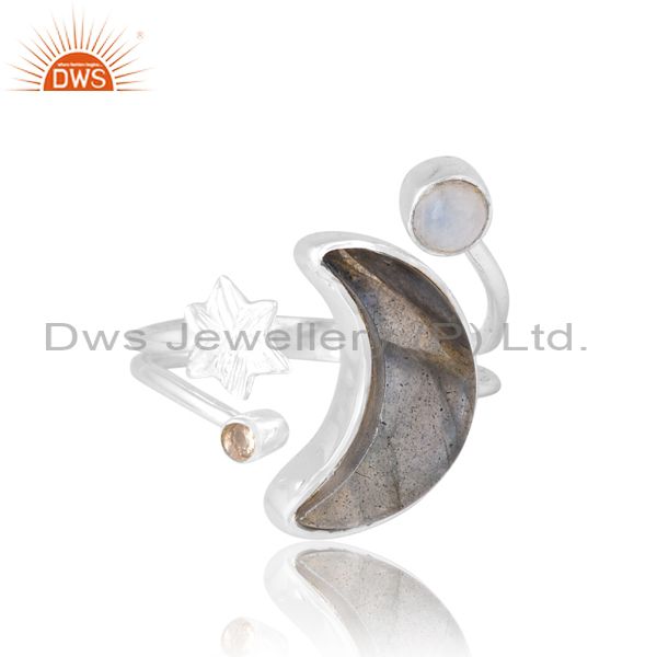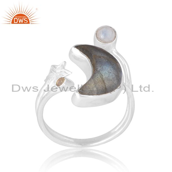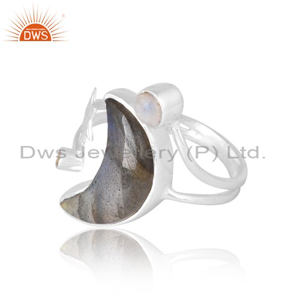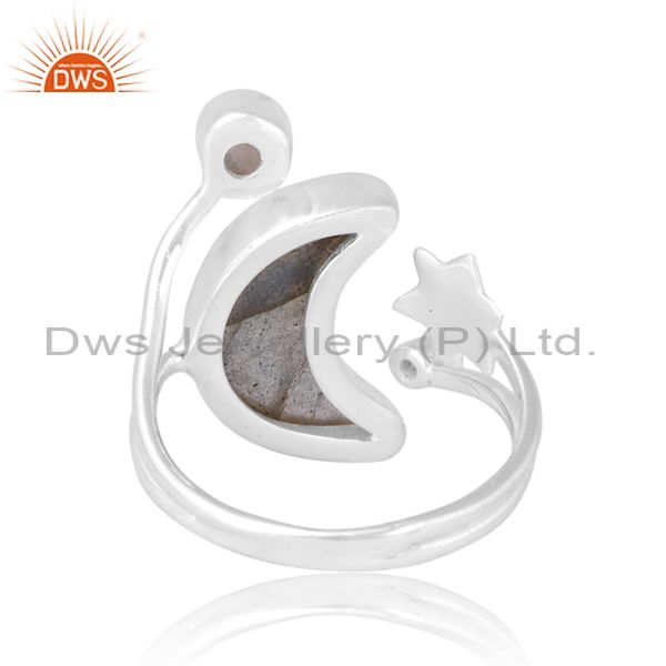 Sterling Silver White Labradorite Cushion Moon Ring For Her