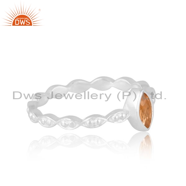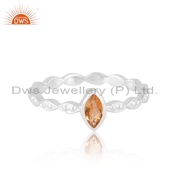 Sterling Silver White Ring Citrine Marquise Cut Stone