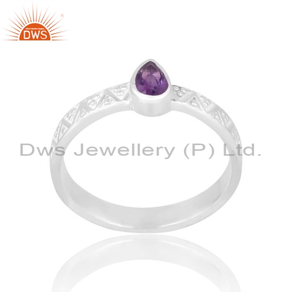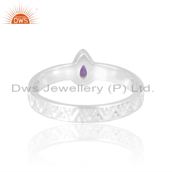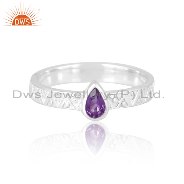 Sterling Silver White Ring With Amethyst Pear Cut Stone