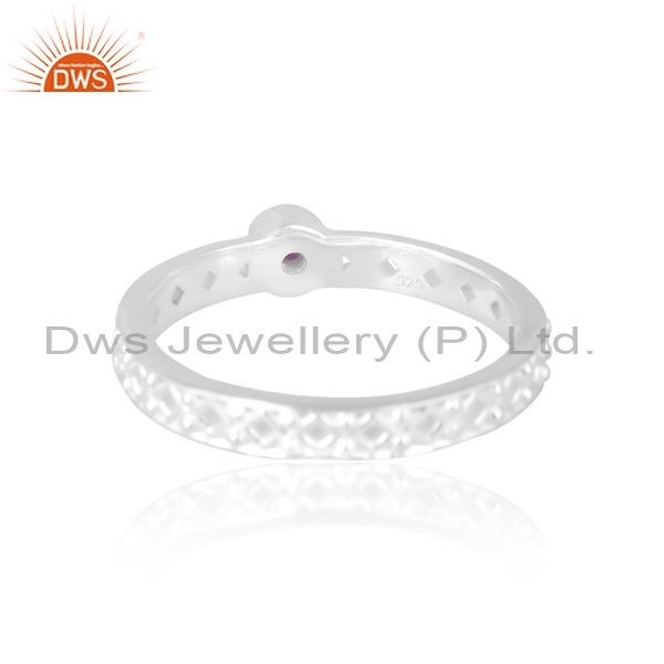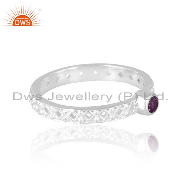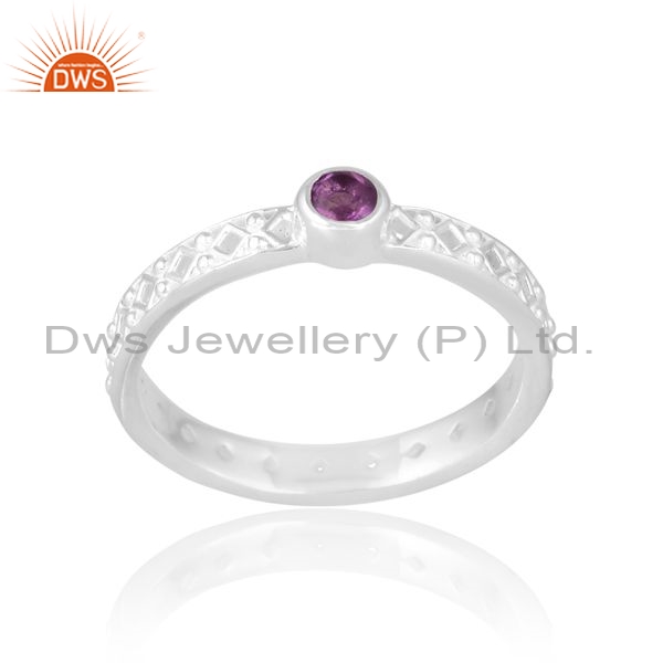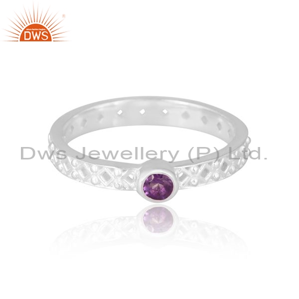 Sterling Silver White Ring With Amethyst Round Cut Gems