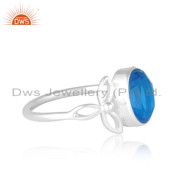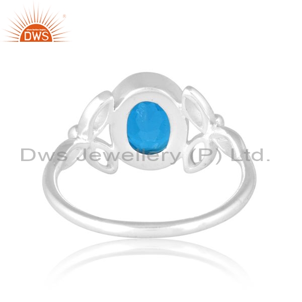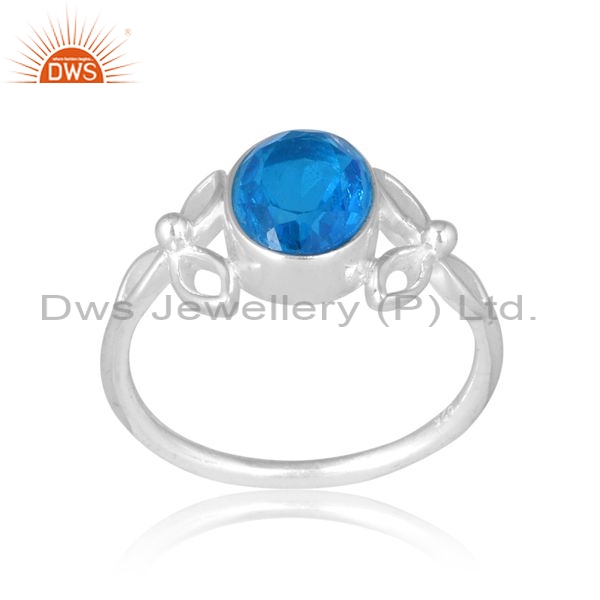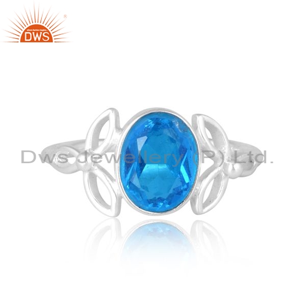 Sterling Silver White Ring With Aquamarine Stone