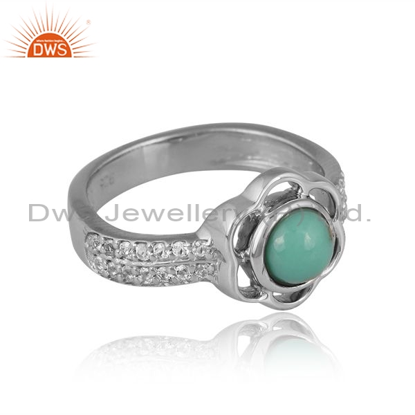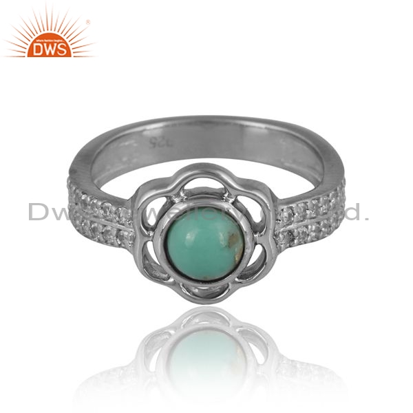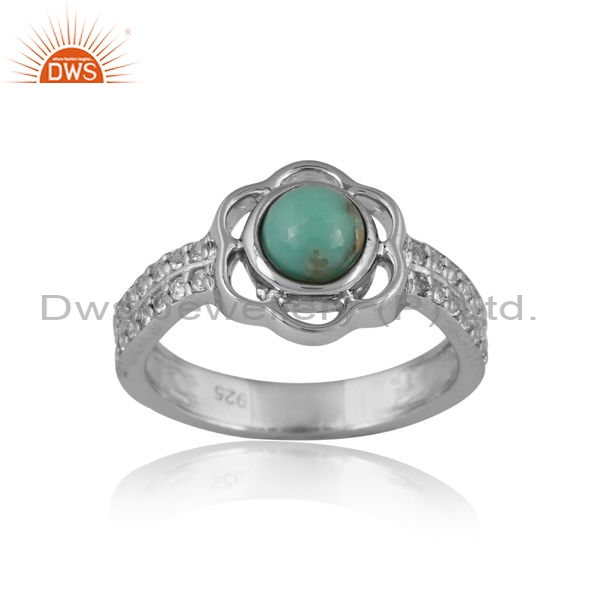 Sterling Silver White Ring With Arizona Turquois Floral Design