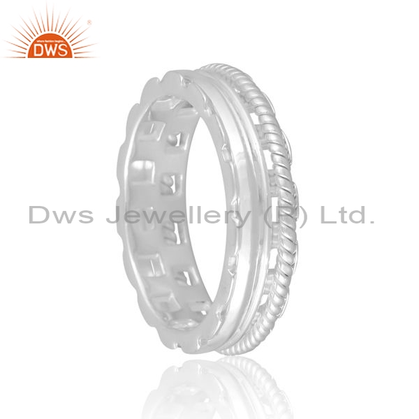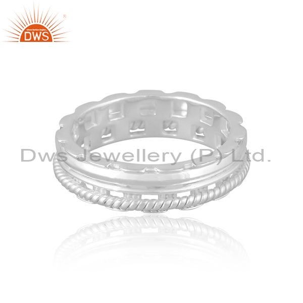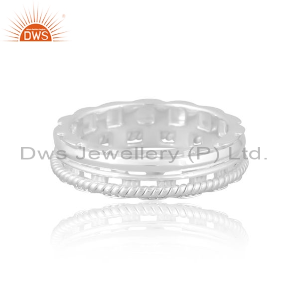 Sterling Silver White Ring With Bani Wire And Plain Band