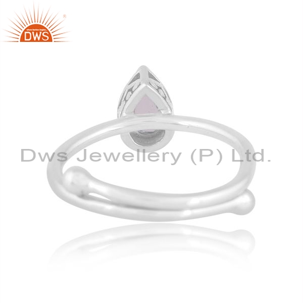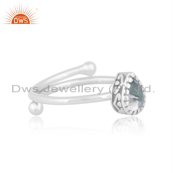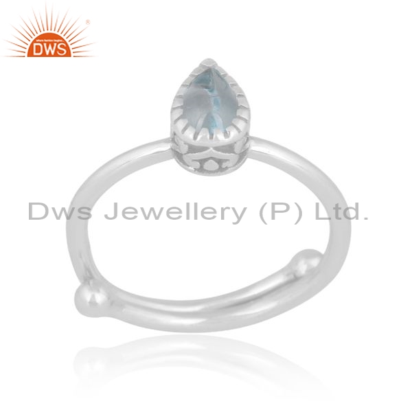 Sterling Silver White Ring With Blue Topaz Pear Cut