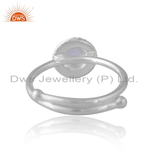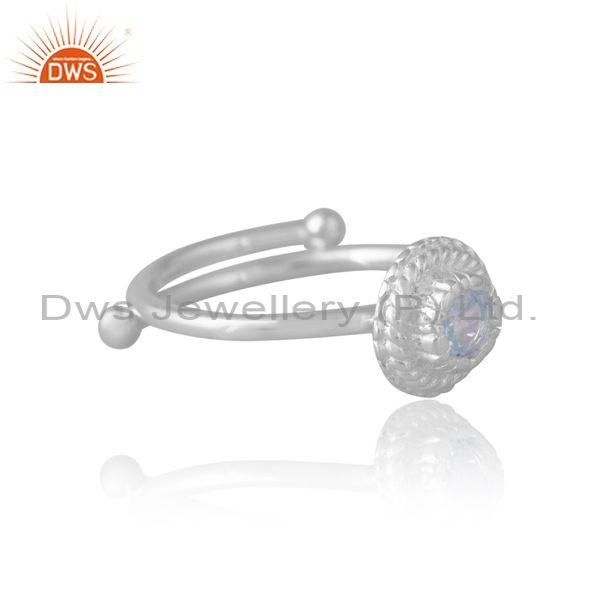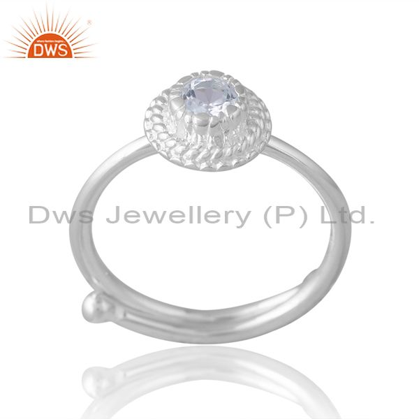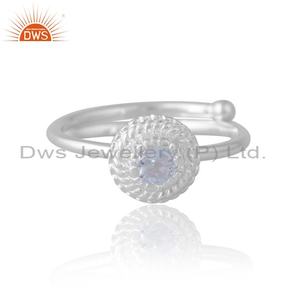 Sterling Silver White Ring With Blue Topaz Round Cut