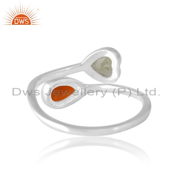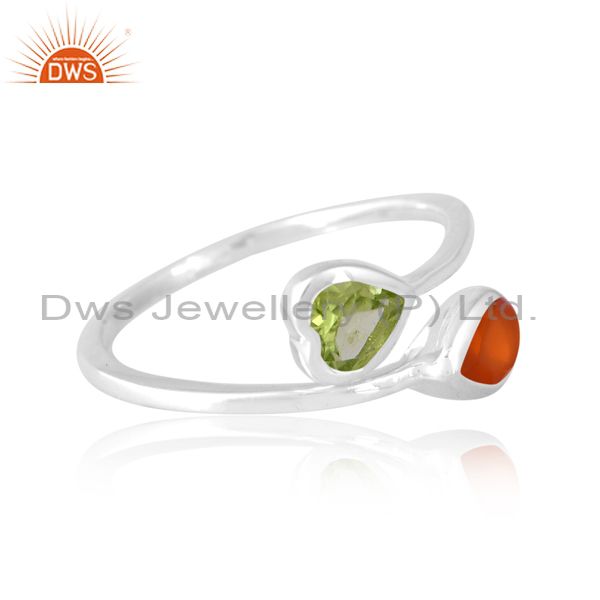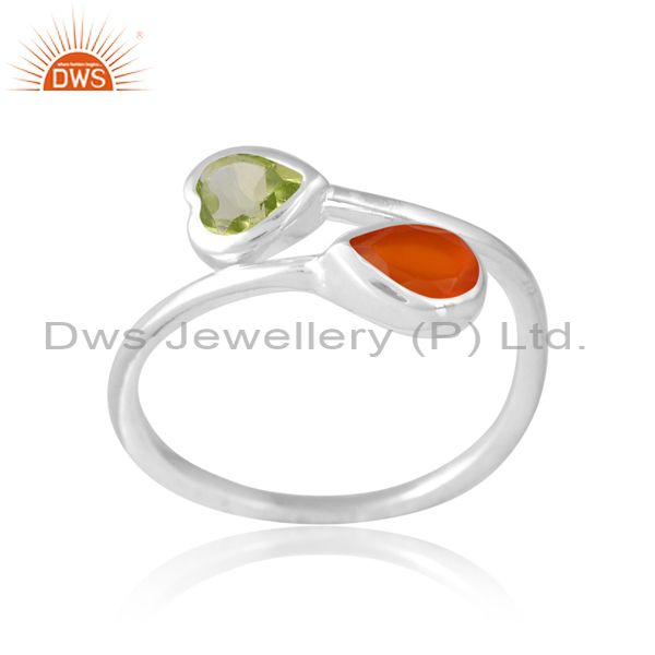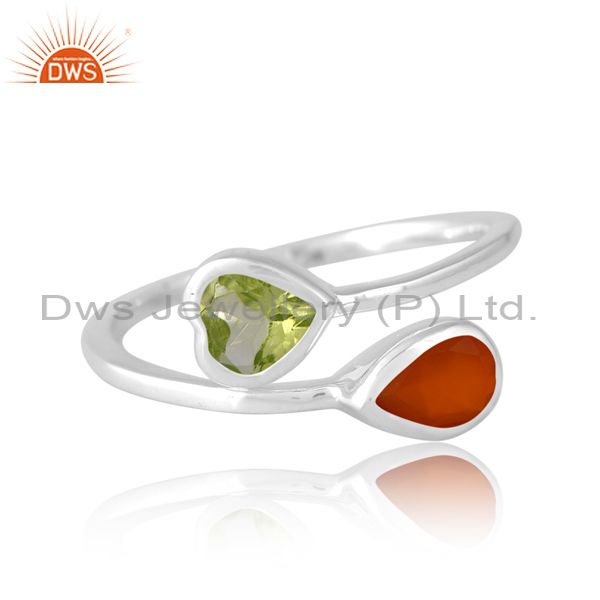 Sterling Silver White Ring With Carnelian And Peridot Cut