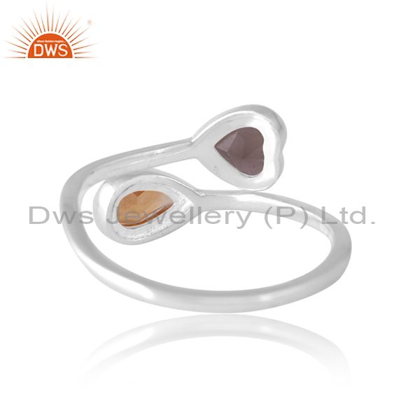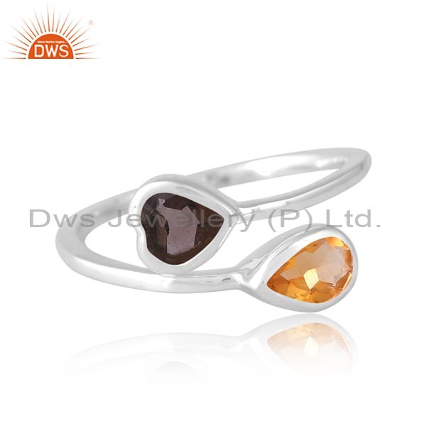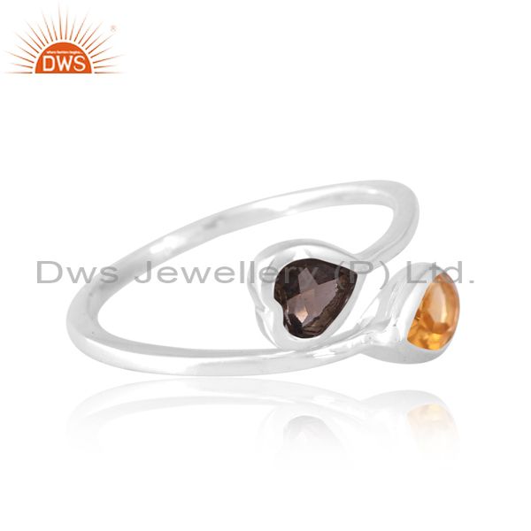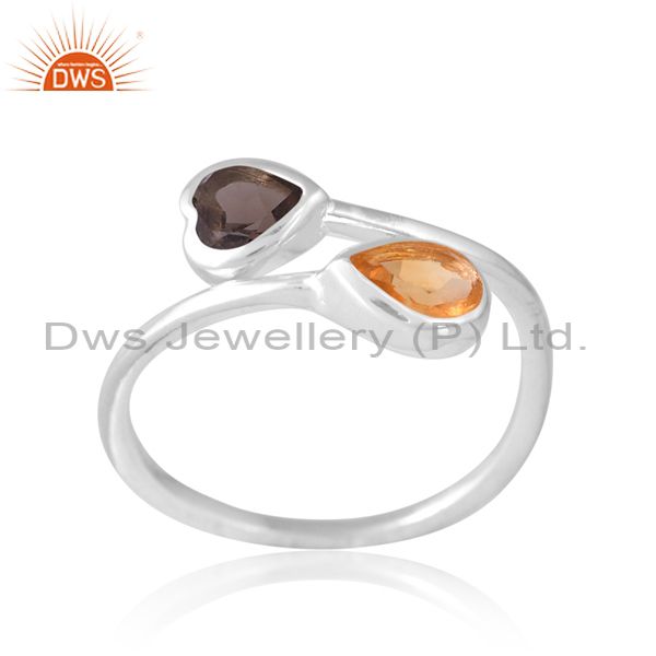 Sterling Silver White Ring With Citrine And Smokey Cut