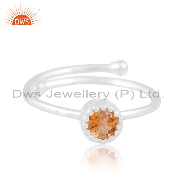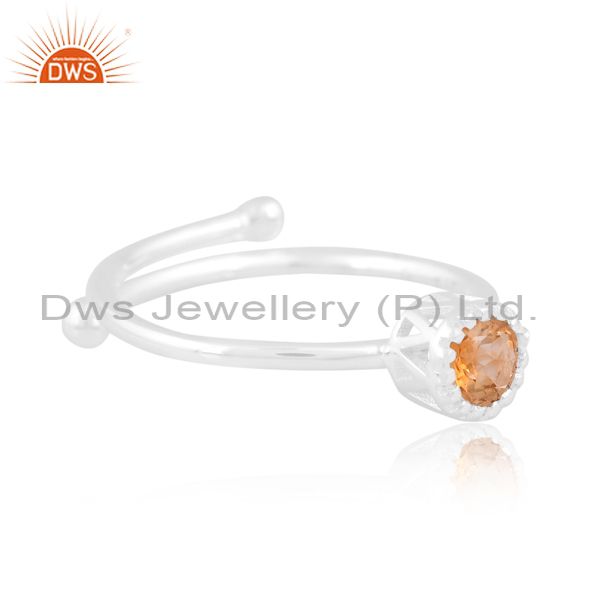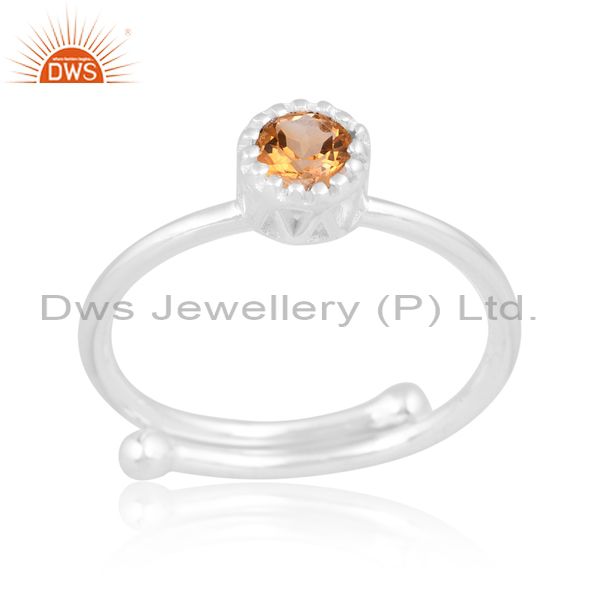 Sterling Silver White Ring With Citrine Round Cut Stone