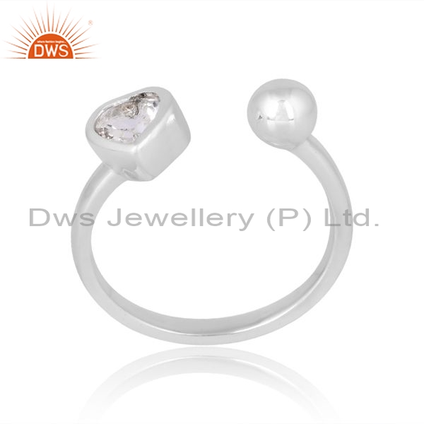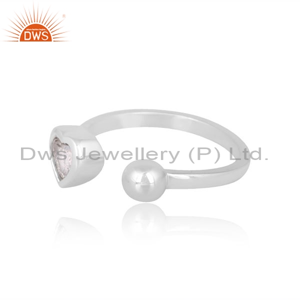 Sterling Silver White Ring With Crystal Heart Cut Stone