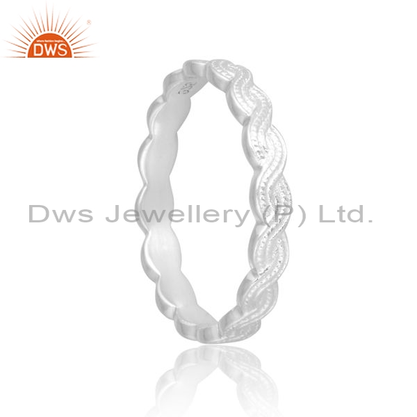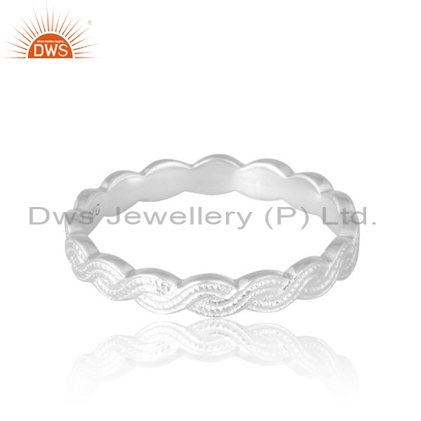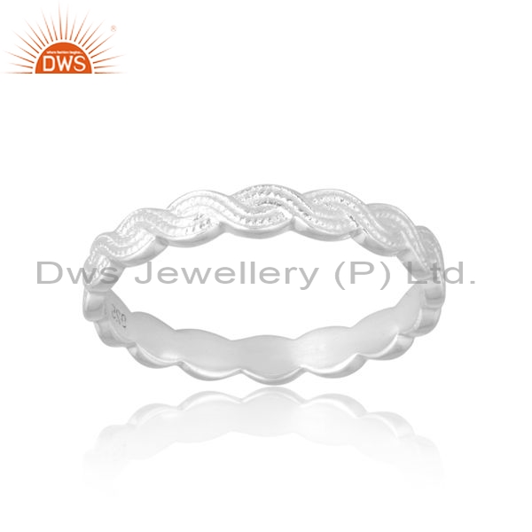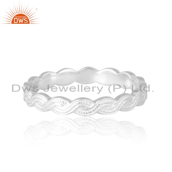 Sterling Silver White Ring With Double Layer Ridge Pattern