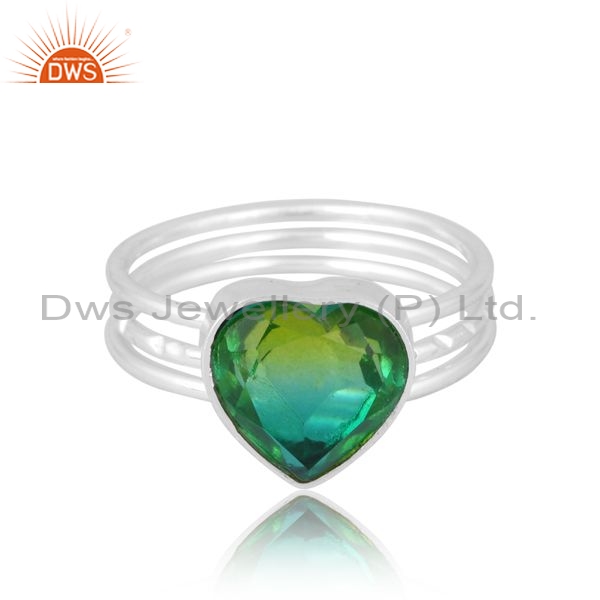 Sterling Silver White Ring With Doublet Biochrome Diopside