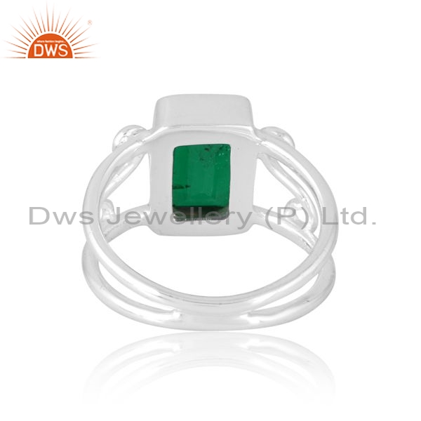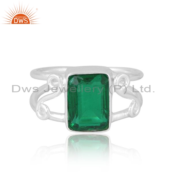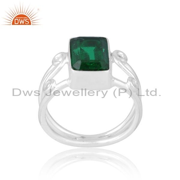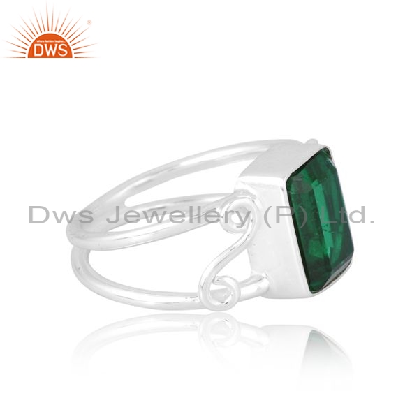 Sterling Silver White Ring With Doublet Zambian Emerald