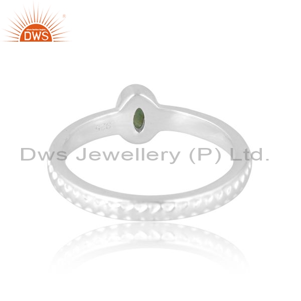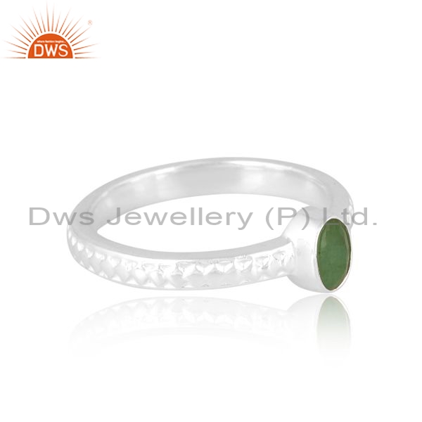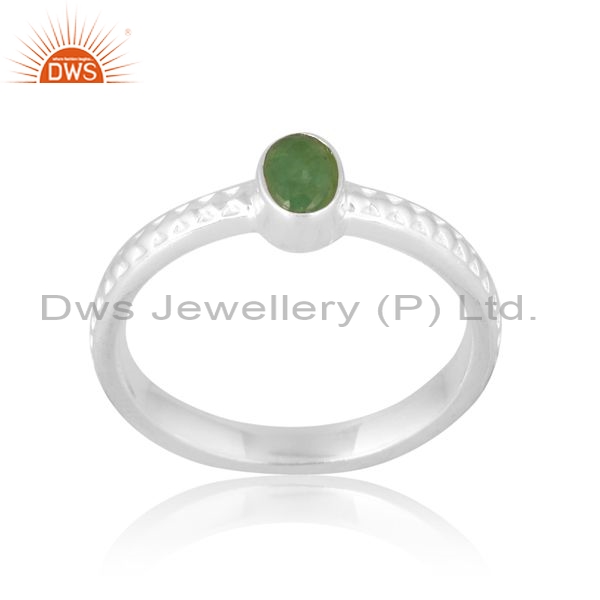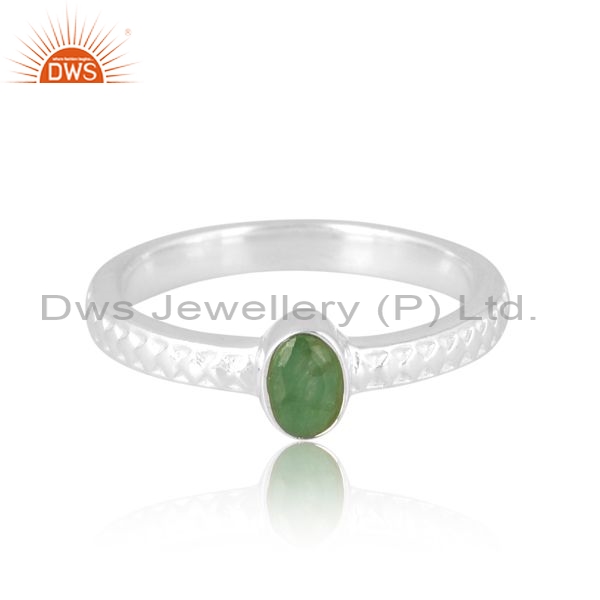 Sterling Silver White Ring With Emerald Oval Cut Stone