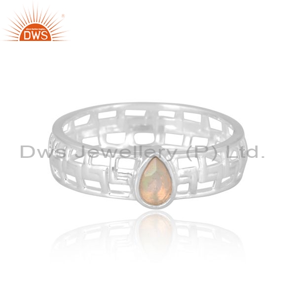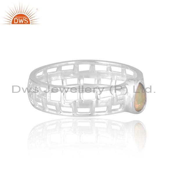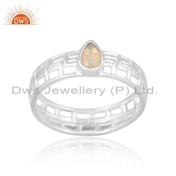 Sterling Silver White Ring With Ethiopian Opal Cut
