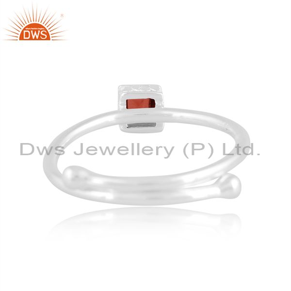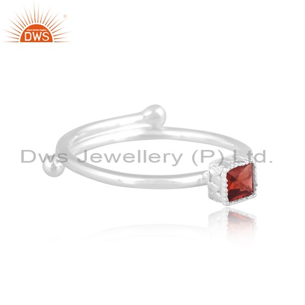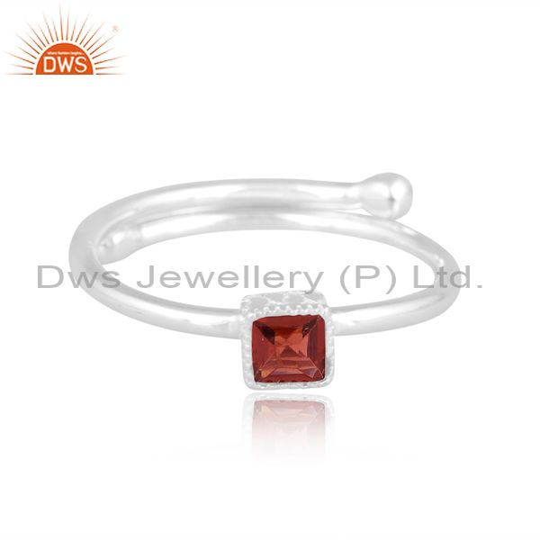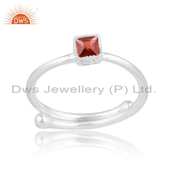 Sterling Silver White Ring With Garnet Cut Square Stone