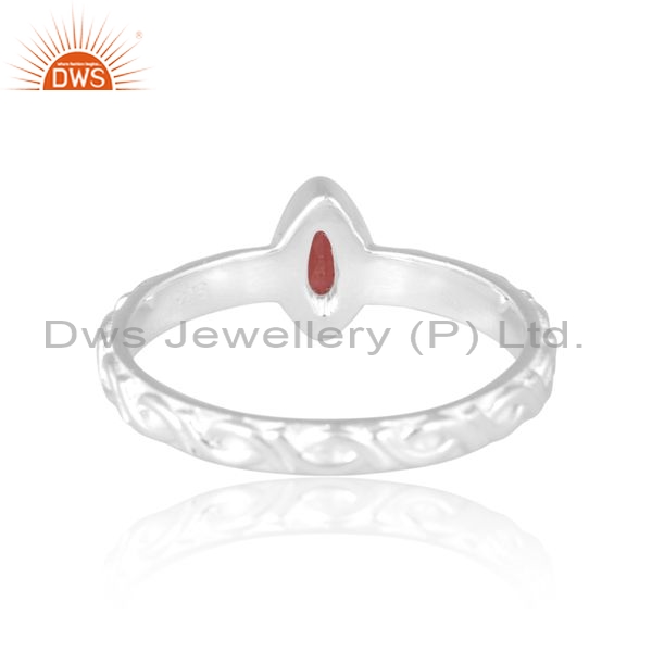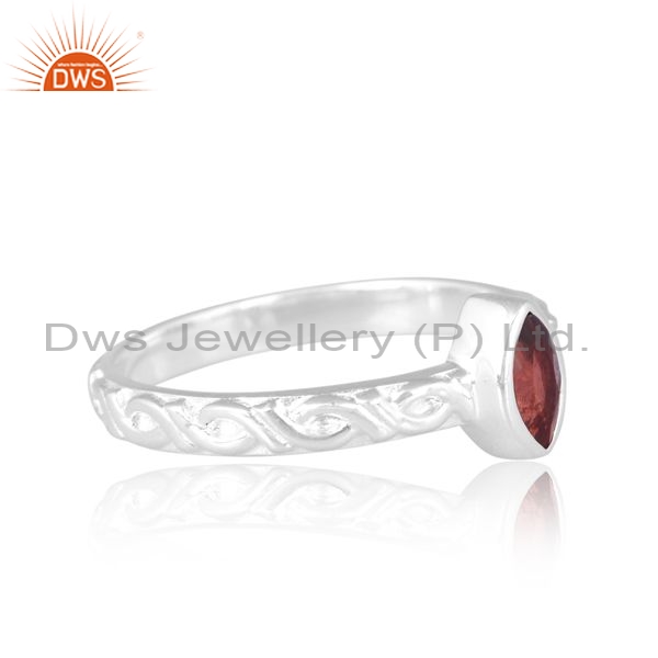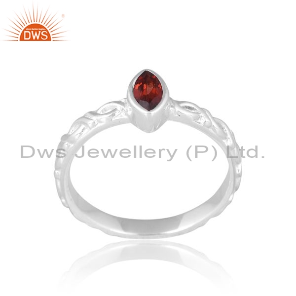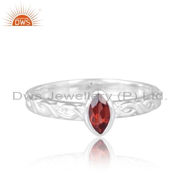 Sterling Silver White Ring With Garnet Marquise Cut