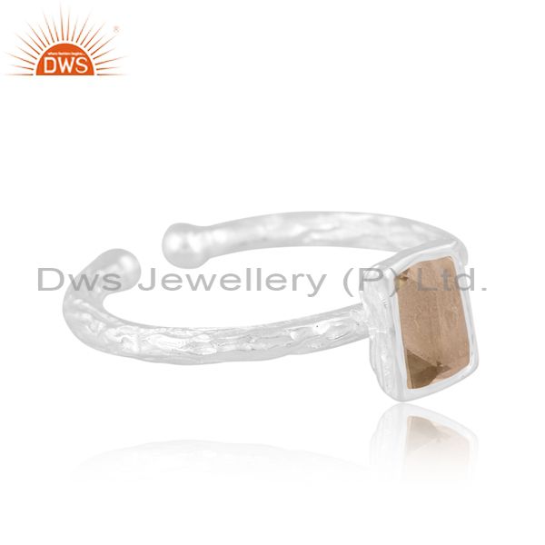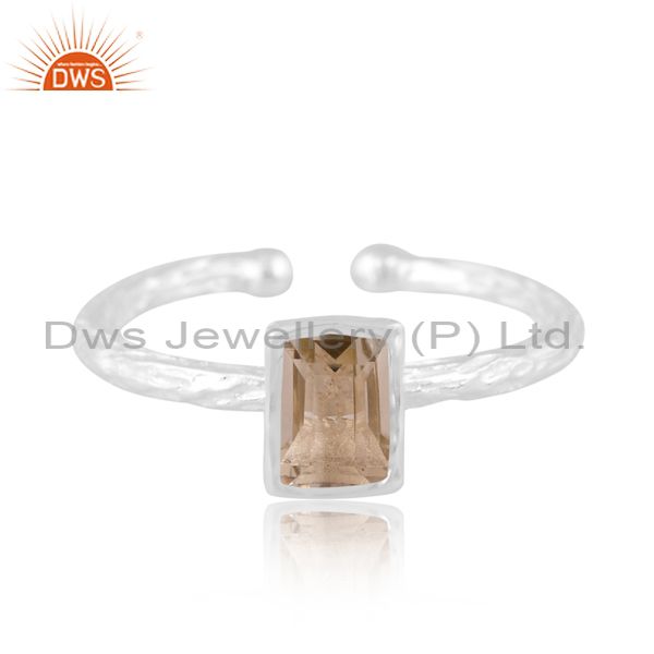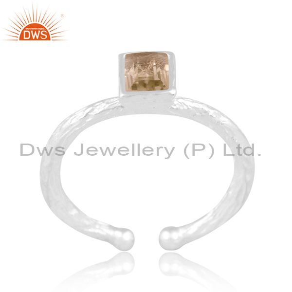 Sterling Silver White Ring With Green Amethyst Stone
