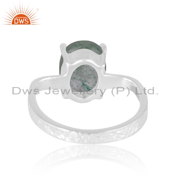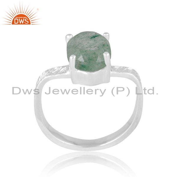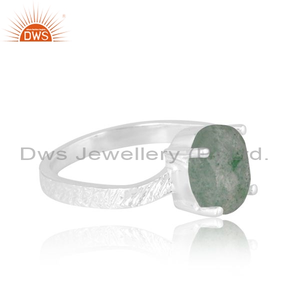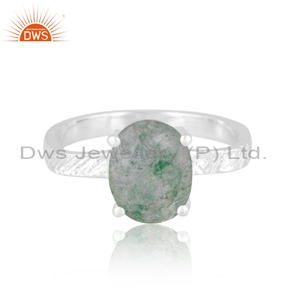 Sterling Silver White Ring With Green Strawberry Oval Cut